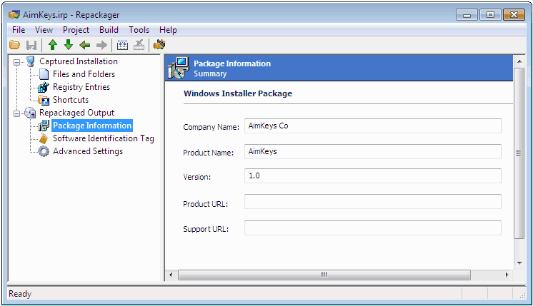 - Select Package Information from the View List. The Package Information view opens, where you can specify information for the Windows Installer package that you build from the Repackager project. Much of this information may be prepopulated based on settings used in the Repackaging Wizard.