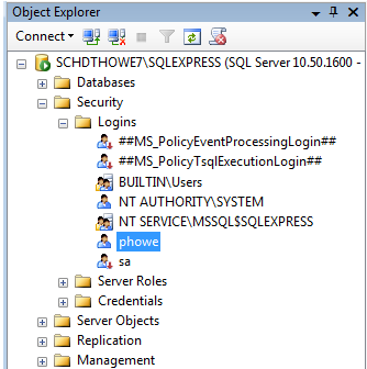 - In the  Object Explorer , open the  Security > Logins  node and right-click on the user account or user group that you want to assign permissions to.