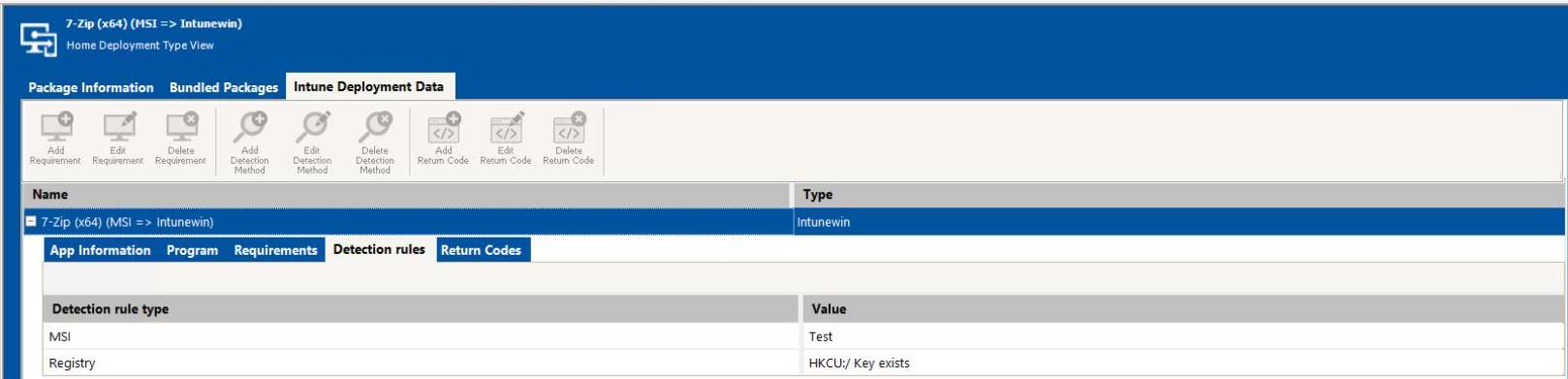 4. View existing detection methods, as described in Intune Deployment Data Tab / Detection rules Subtab.