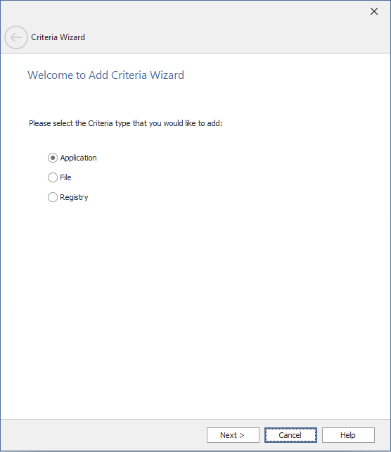 On the Welcome panel, you select the type of the criteria that you are adding: