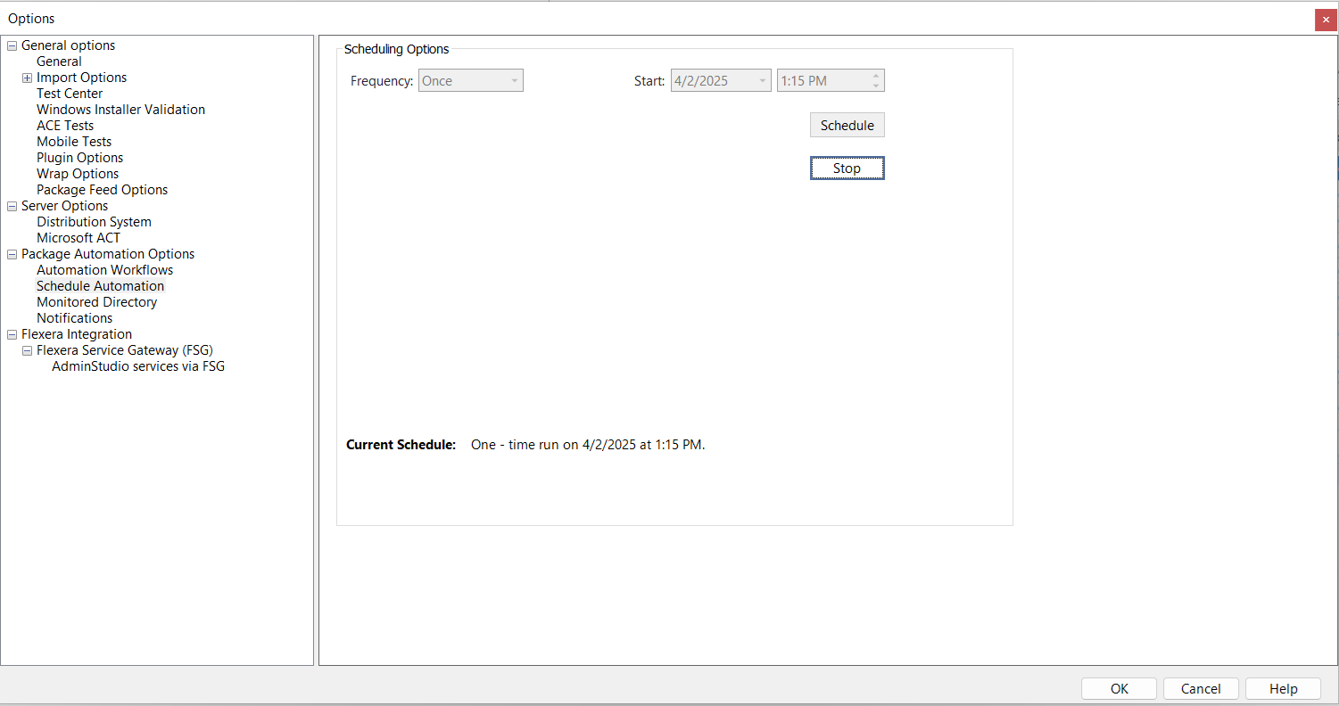 - Under Package Automation Options , select Schedule Automation . The Scheduling Options tab opens.
