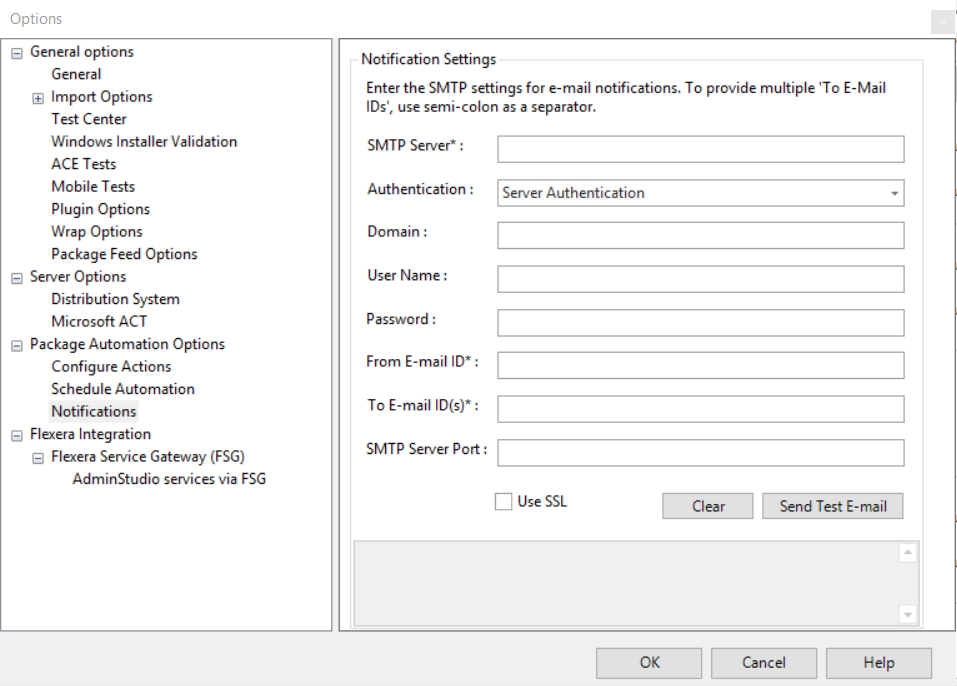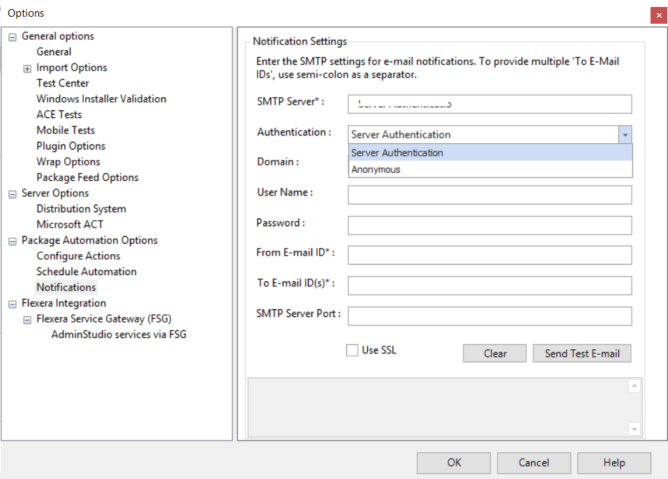 4. Click the Authentication drop down and set to either Server Authentication or Anonymous . ![](/images/Notificatio Options2.PNG)