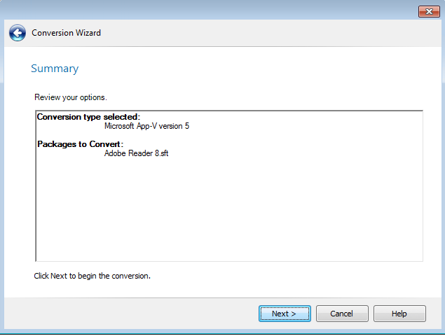 - Set App-V 5.0 conversion options, as described in Setting App-V 5.0 Conversion Options.
