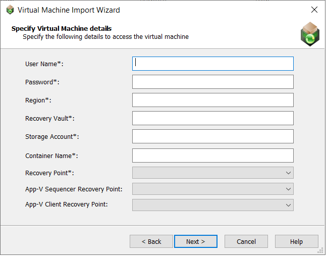 On the Specify Virtual Machine details panel, enter the following details to use to access the Azure virtual machines you selected on the Select Virtual Machines panel.